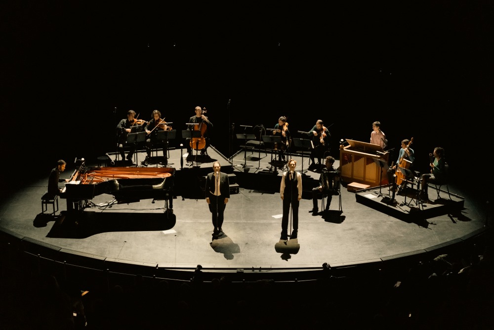 Sur scène, Lucile Richardot et Éléonore Pancrazi mènent la revue, accompagnées par douze instrumentistes parmi lesquels Adam Laloum, Omer Bouchez, Julien Beautemps, Hélène Desaint…